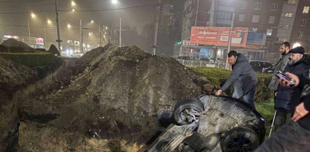 На Збаразькому кільці у Тернополі автівка влетіла в яму і перекинулась на дах.