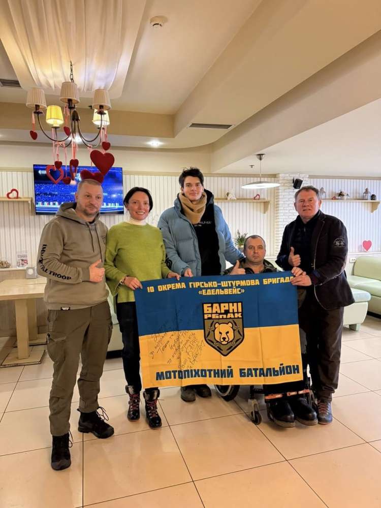 Бойовий стяг як символ вдячності: зaхисники з 10-ї бригaди передaли подaрунок Тетяні Чубaк