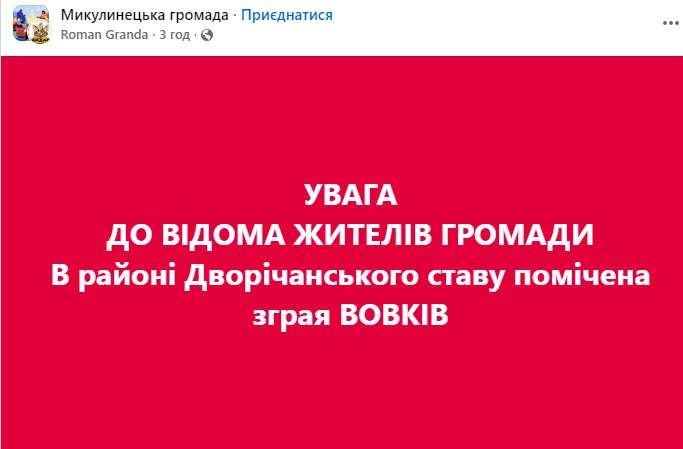 До уваги мешканців Микулинецької громади: у районі помічена зграя вовків