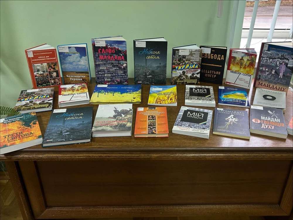 Завідувачка читального залу Ірина Любезна пригадала ключові події новітньої історії України – Революцію на граніті, Помаранчеву революцію та Революцію Гідності. А також презентувала книжкову виставку «Гідність і свобода: сторінки боротьби», де представлено історичні та документальні видання, спогади очевидців, публіцистику й художні твори, що відображають прагнення українців до свободи та утвердження гідності. Виставка стала важливим доповненням бесіди, дозволивши студентам глибше зануритися у тему та відкрити для себе нові джерела знань.