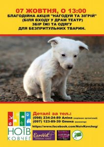 Організатори, громадська організація «Ноїв ковчег» у черговий раз організовують збір їжі, одягу і ліків для безпритульних тварин.