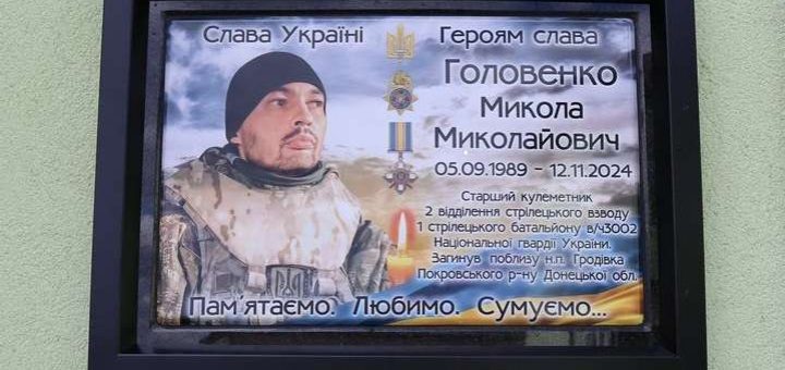 Козівській громаді відкрили меморіальну дошку бійцю Миколі Головенку. Її встановили на на фасаді Козівського ліцею №1. Про це написали на сторінці Козівської селищної ради в соцмережі Facebook.