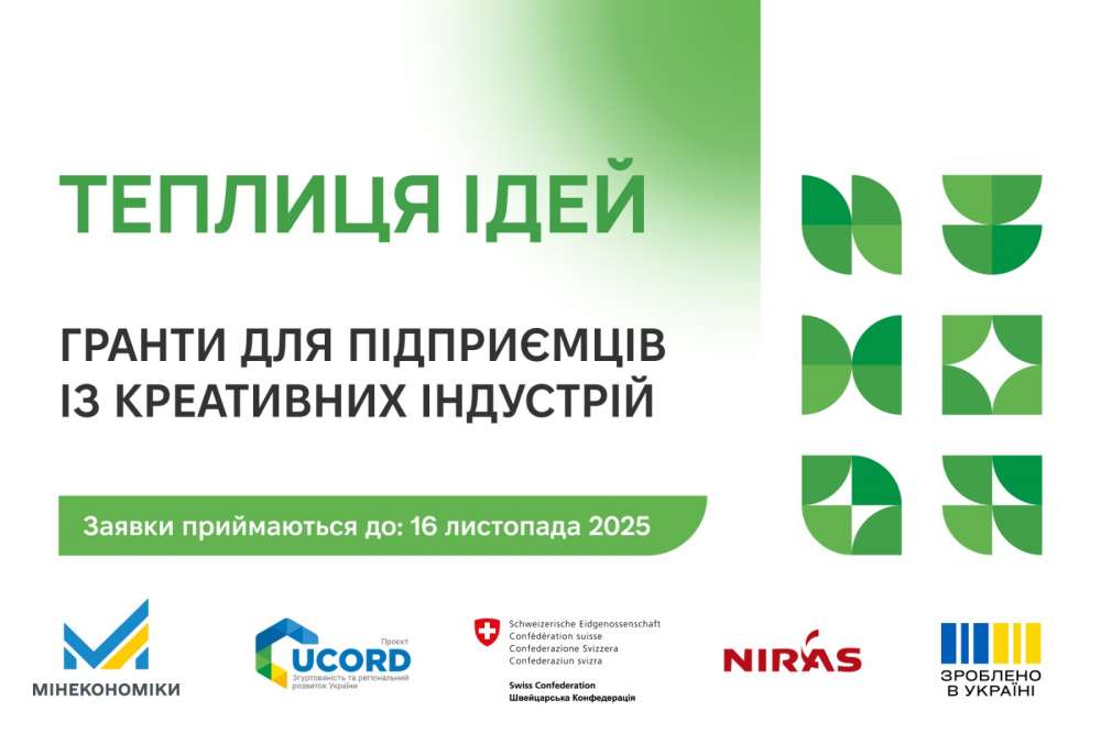 Креативні підприємці Тернопільщини можуть подати заявку на гранти у рамках програми «Теплиця ідей» від Мінекономіки та проєкту UCORD.