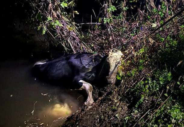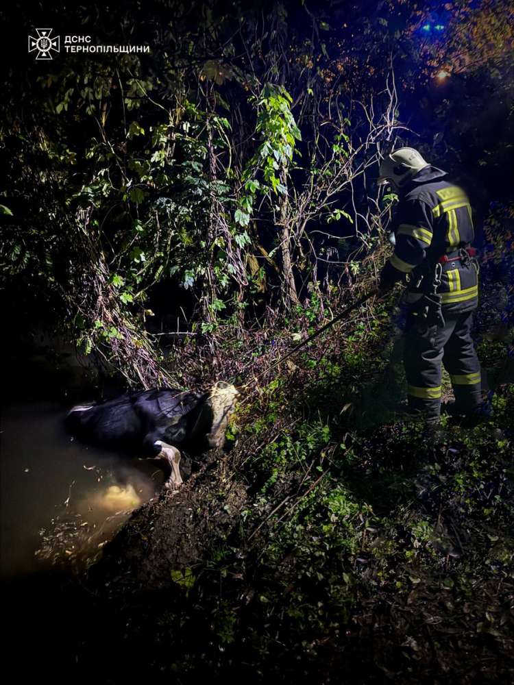 На Чортківщині корова впала у річку: тварину з водойми витягали рятувальники