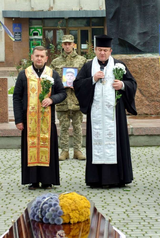 Кортеж із тілом військового люди зустрічали на колінах. На площі Героїв Майдану у Шумську військові занесли труну під супровід пісні «Плине кача». Священники відслужили панахиду. Усі присутні помолилися за упокій душі захисника України.