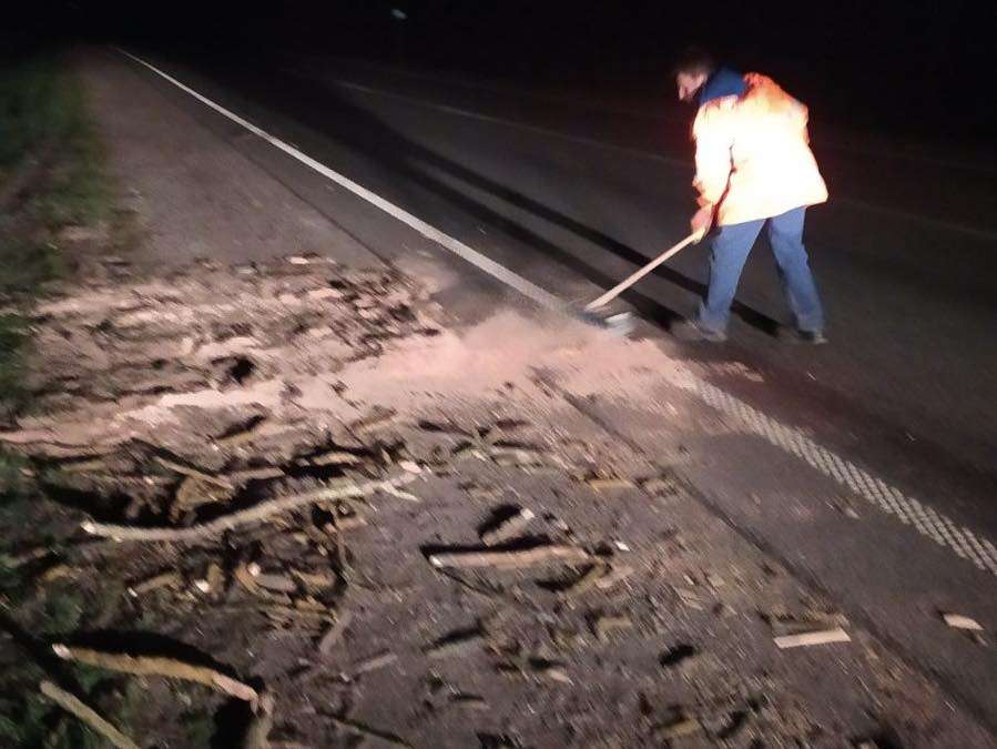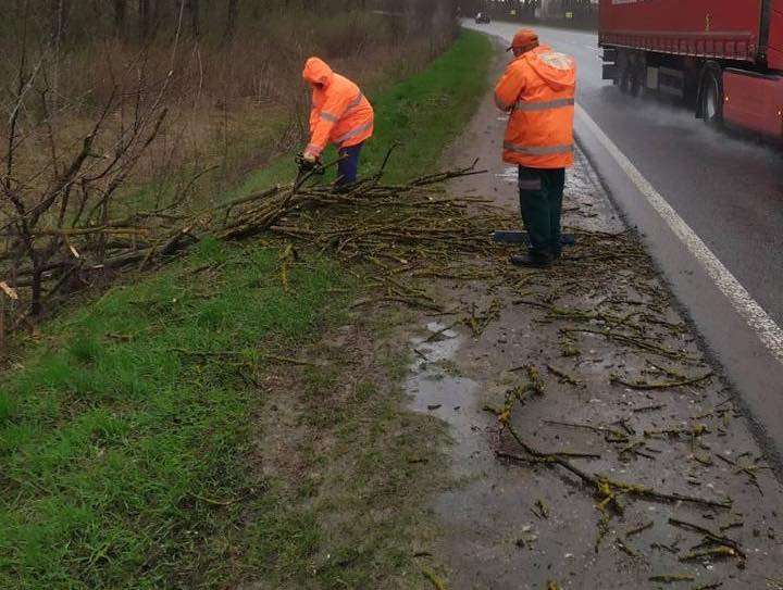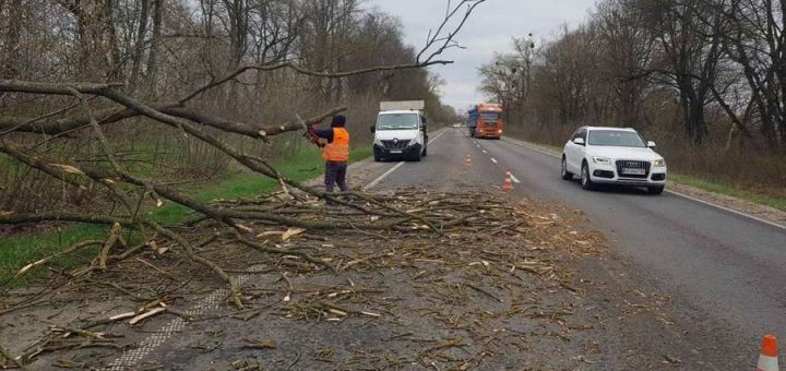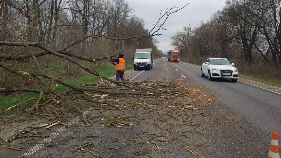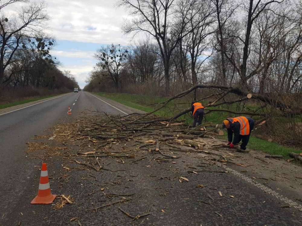 Через сильні пориви вітру на Тернопільщині на узбіччя доріг попадали дерева та гілля. Дорожники вже виїхали на місця подій і ліквідовують наслідки буревію.