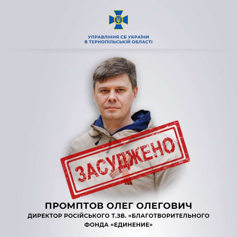 На Тернопільщині до восьми років позбавлення волі засудили громадянина Росії за те, що заснований ним благодійний фонд фінансував діяльність окупаційних військ РФ на території України.