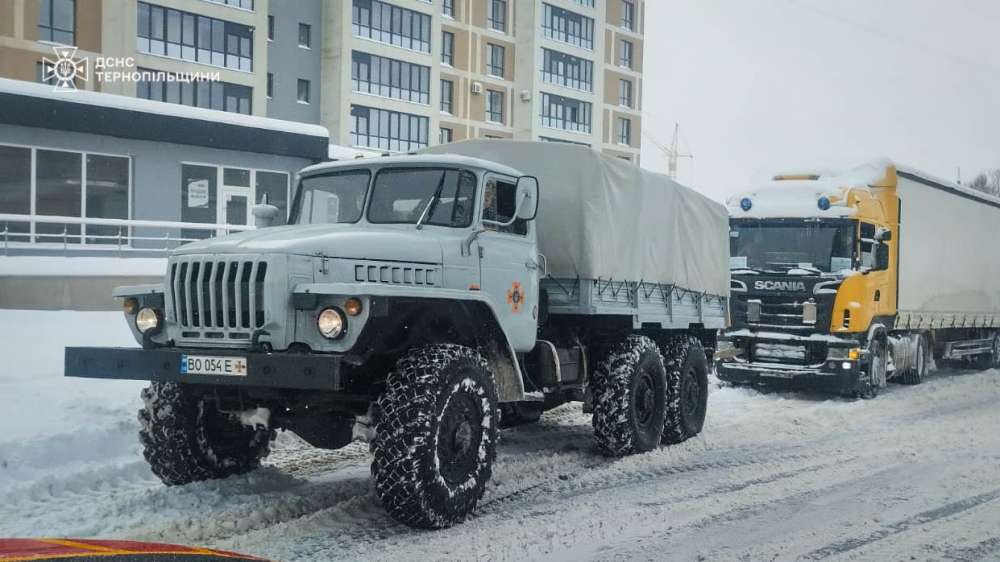 8 січня о 12 годині в Тернополі на вулиці Текстильній зі снігу визволили три вантажні автомобілі, серед цих машина Червоного Хреста. Допомогу надали трьом людям.