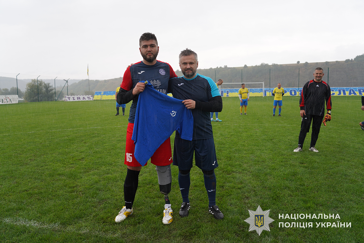 Поряд із поліцейськими на полі грав на протезі і ветеран штурмової бригади НПУ «Лють» Степан Гончарик. Він вважає участь у матчі знаком підтримки поранених побратимів. Чоловік зізнався, що його мотивував займатися спортом товариш з ампутацією, який сьогодні бігає марафони. І тепер Степан готовий допомагати іншим ветеранам, які хочуть займатися спортом.