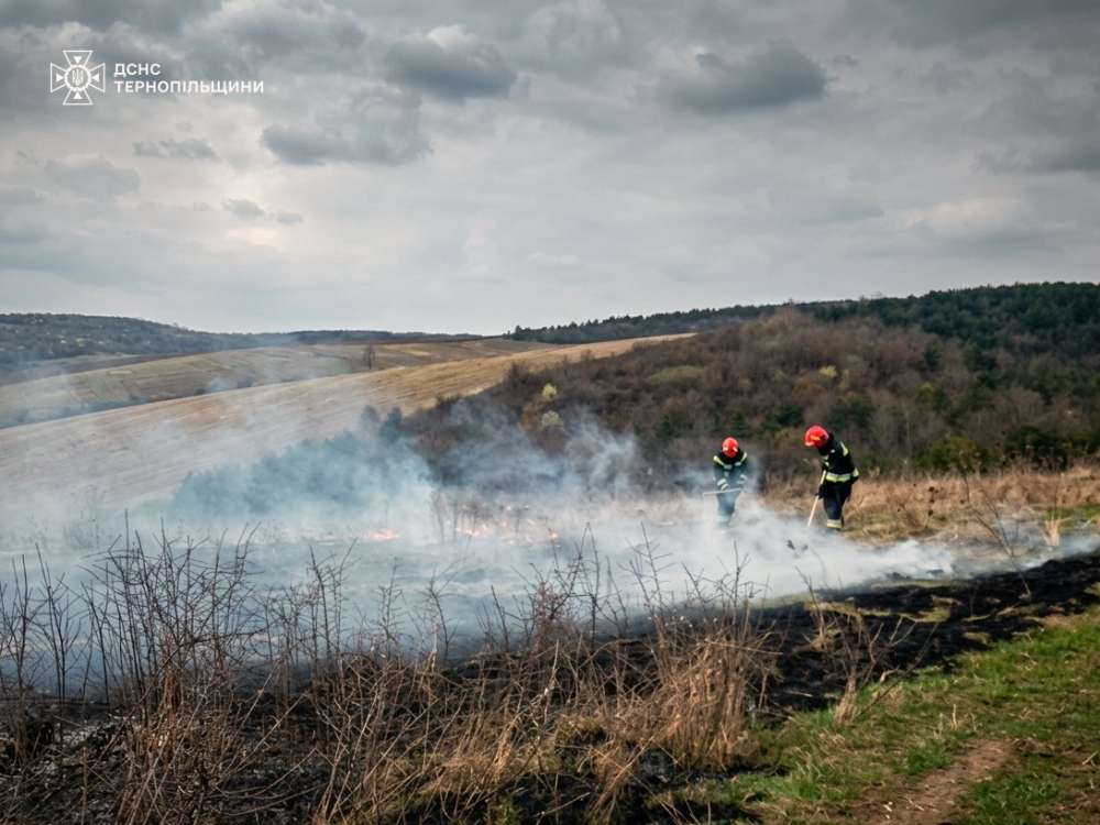 Всього за добу — 6 випадків. Найбільша — у селі Дичків, площа 1,5 га. Займання виникали у Тернополі по вул. Батьківського та Тарнавського, Підволочиську, Теребовлі та селі Буцики Гримайлівської громади.