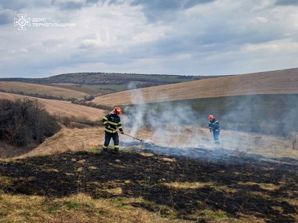 Всього за добу — 6 випадків. Найбільша — у селі Дичків, площа 1,5 га. Займання виникали у Тернополі по вул. Батьківського та Тарнавського, Підволочиську, Теребовлі та селі Буцики Гримайлівської громади.