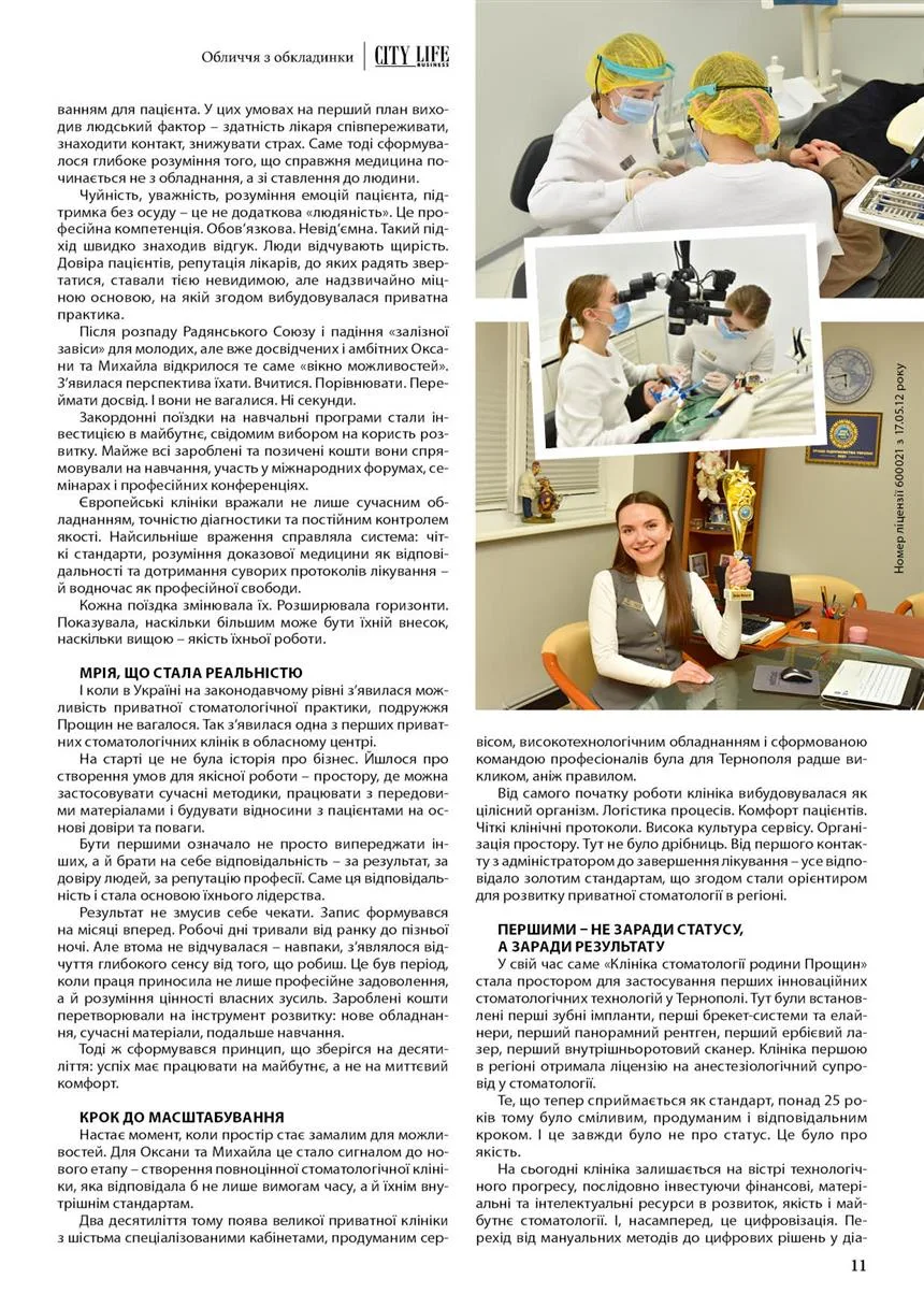 Сьогодні «Клініка стоматології родини Прощин» – це не тільки адреса на карті Тернополя. Це приклад того, як особисті цінності лікарів можуть перерости у філософію медичного закладу, а професійна принциповість – у бренд із бездоганною репутацією.