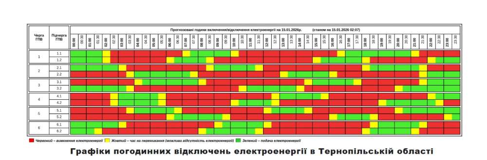 15 січня на Тернопільщині діятиме графік погодинних відключень електроенергії.