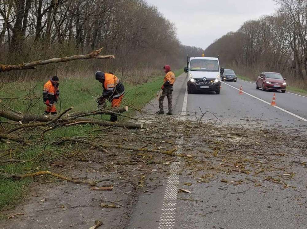 Шквальні пориви вітру, що вирували областю кілька днів поспіль, спричинили падіння дерев та гілля на проїзну частину. Дорожні служби оперативно ліквідовували наслідки стихії, аби забезпечити безпечний проїзд транспорту.