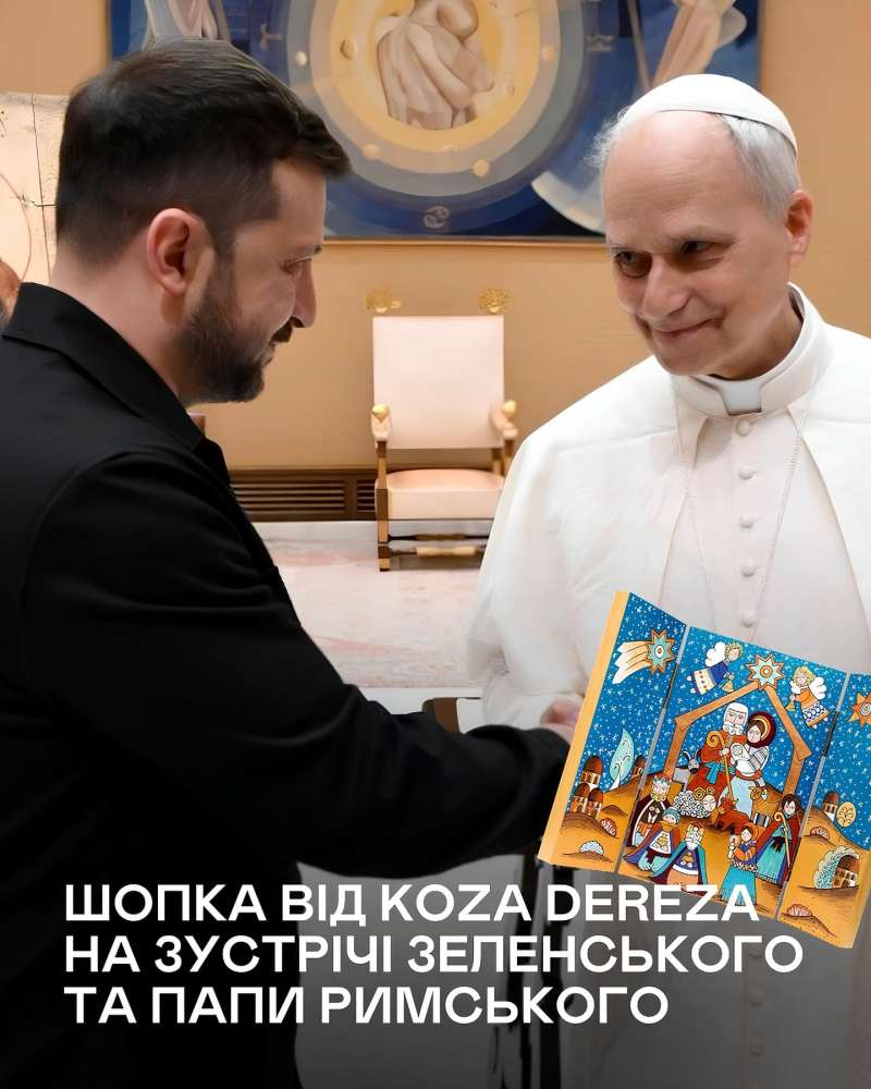Різдвяну шопку-триптих, створену майстрами етномайстерні «Коза Дереза», представили під час аудієнції Президента України Володимир Зеленський у Папи Римського Папа Римський. Для команди майстерні це стало великою честю і справді особливим моментом.