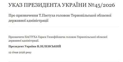 Нагадаємо, 3 січня Володимир Зеленський повідомив про зміну керівника Тернопільської ОВА. До цього з серпня 2024 року область очолював В’ячеслав Негода. 8 січня на сайті офіційного інтернет-представництва президента опублікували указ про його звільнення з посади.