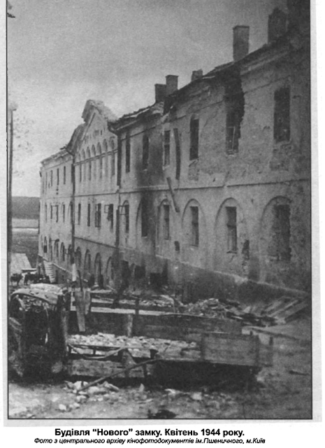 Він був дуже поруйнований внаслідок подій війни. Руїни стояли конкретні, все було в грузах. Люди розбирали те будівельне сміття на власні потреби. Відновити його було нереально. Новий замок мав глибокі підвали, але вони також знищені…то все засипали після війни. Свого часу на Замковій було провалля.