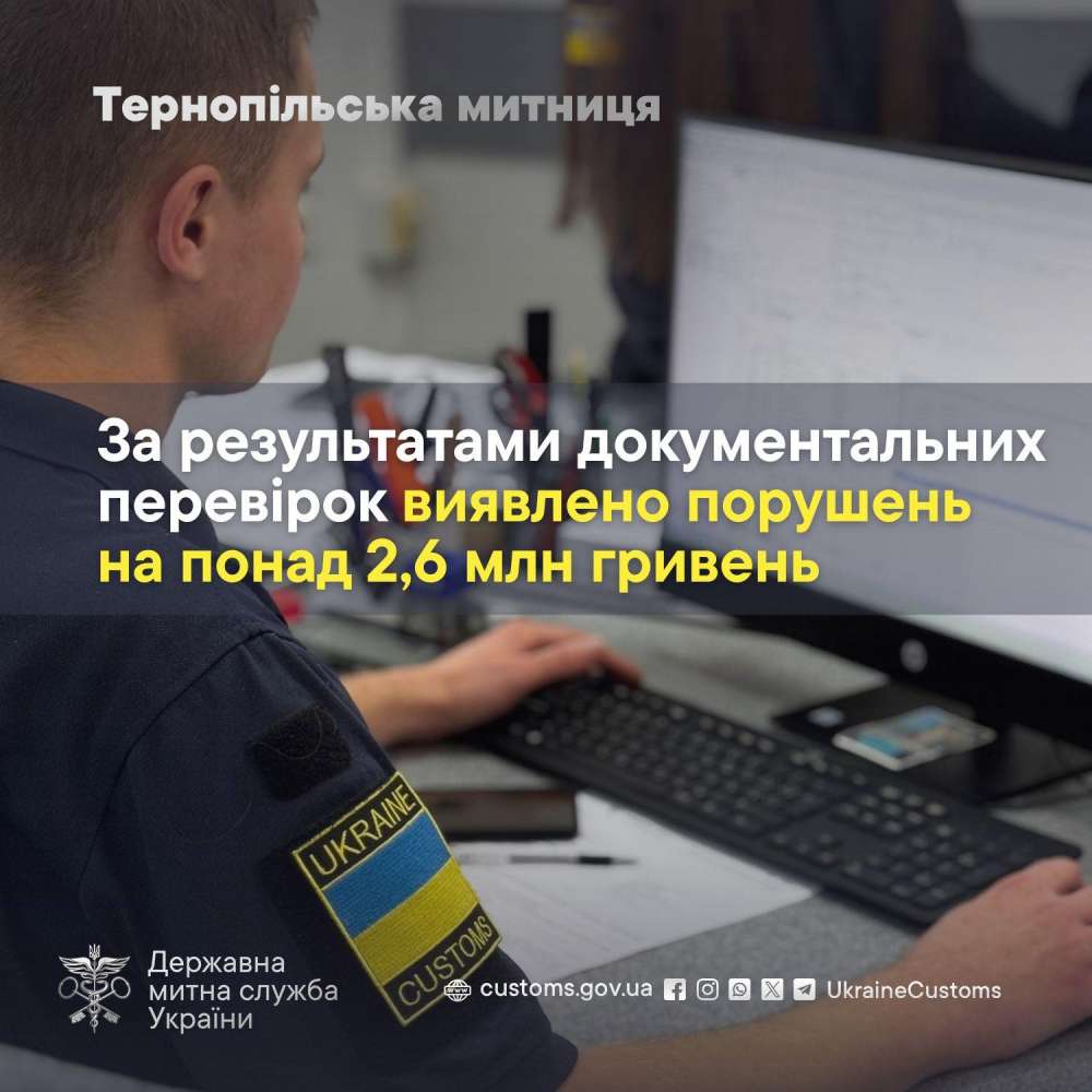 Спеціалісти тернопільської митниці виявлии порушень на понад 2,6 млн гривень