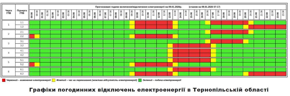 У Тернопільській області в п’ятницю, 9 січня, застосовуватимуть графік погодинних відключень електроенергії. Про це повідомили у «Тернопільобленерго».