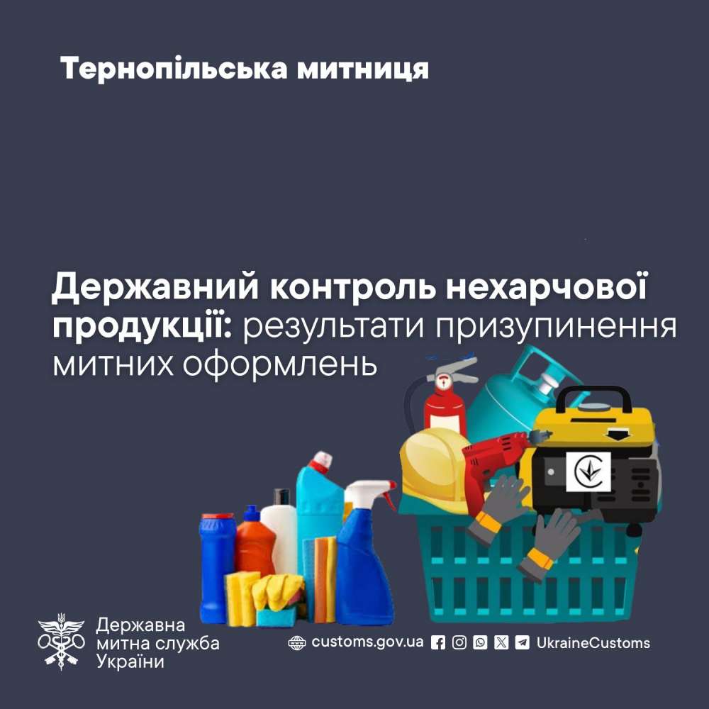 З початку 2025 року Тернопільська митниця в межах державного контролю нехарчової продукції ухвалила 22 рішення про призупинення митного оформлення товарів. Такі рішення приймали відповідно до статті 38 Закону України «Про державний ринковий нагляд і контроль нехарчової продукції». Про це пише Тернопільська митниця.