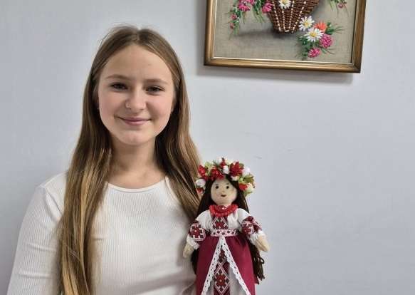 Софія представила на конкурсі роботу «Лялька-Українка» у номінації «Образотворче, декоративно-прикладне мистецтво».