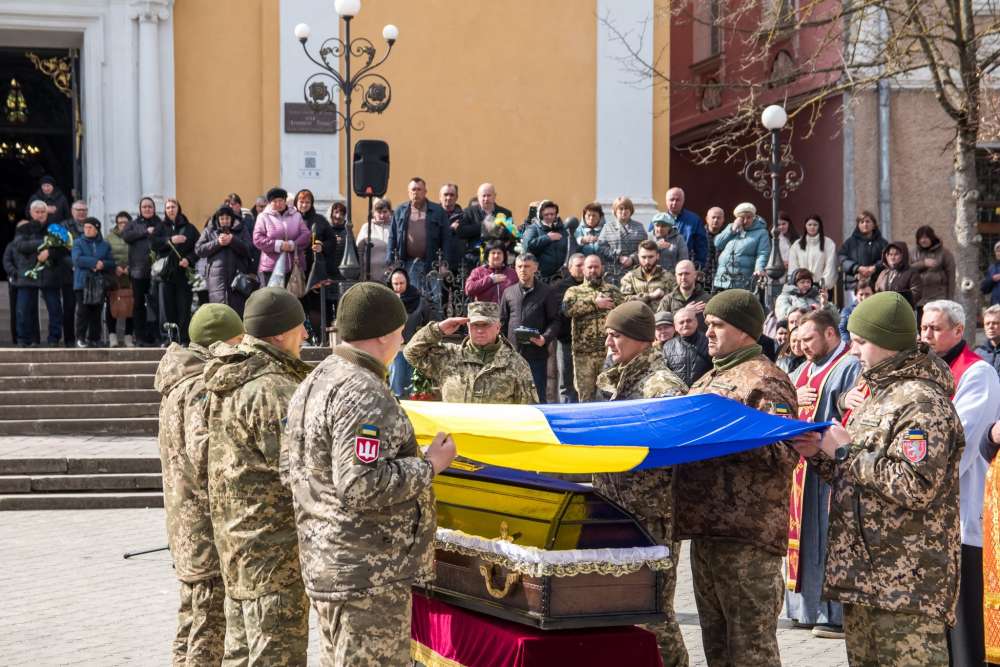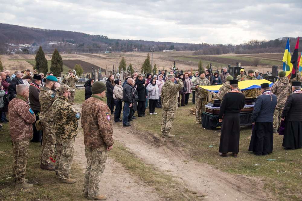 Попрощатися з бійцем прийшли рідні, друзі, близькі, жителі громади, представники влади і духовенства.