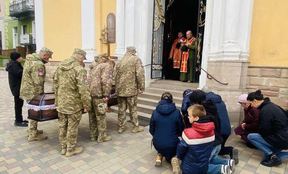Попрощатися з бійцем прийшли рідні, друзі, близькі, жителі громади, представники влади і духовенства.