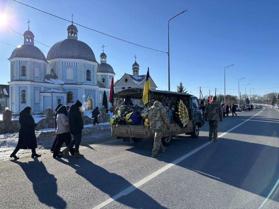 «Прощання з Героєм розпочалося на подвірʼї його рідного дому в селі Городище. Звідти траурна процесія вирушила до церкви Успіння Пресвятої Богородиці, де пройшла заупокійна служба за загиблим бійцем», – йдеться у повідомленні.