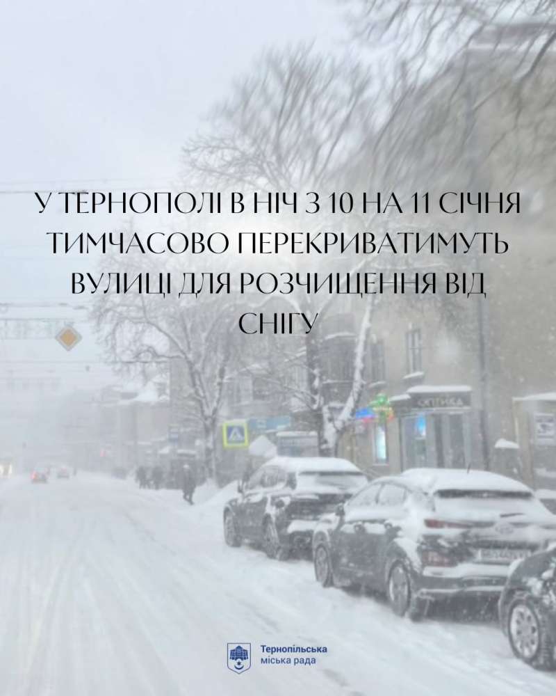У ніч з 10 на 11 січня в Тернополі планується тимчасове перекриття руху на окремих ділянках доріг