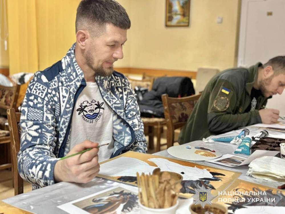 У Тернополі для поранених поліцейських і військових організували артреабілітацію. Під час майстер-класу кожен працював над власною картиною, – повідомили на сайті Нацполіції області.