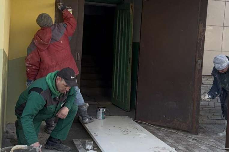 «Біля 1 та 2 під’їздів ремонтують та фарбують елементи благоустрою, облаштовують плитку при вході, фарбують лавки та вхідні двері. На території встановили новий контейнерний майданчик для збору сміття», – йдеться у повідомленні.