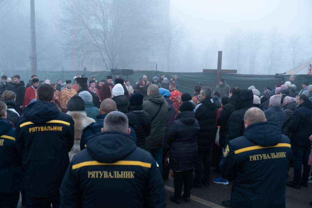 У Тернополі освятили пам’ятний хрест на місці будинку на вулиці Стуса, що був зруйнований ракетною атакою.