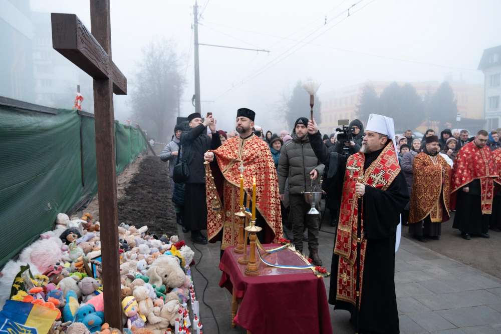 Під час освячення хреста, вшанували пам’ять тернополян, які загинули внаслідок обстрілу 19 листопада.
