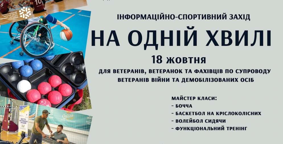 У Тернополі проведуть захід з адаптивних видів спорту. Ця зустріч об’єднає ветеранів та фахівців, які працюють із ветеранами війни та демобілізованими особами. Про це написали на сайті міської ради.