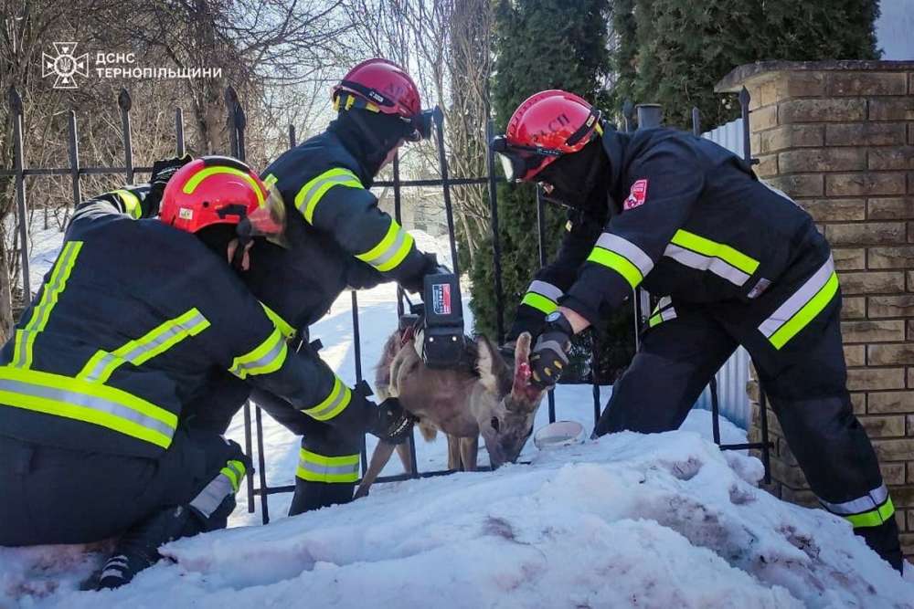 У Тернополі рятувальники допомогли косулі, яка застрягла в металевій огорожі