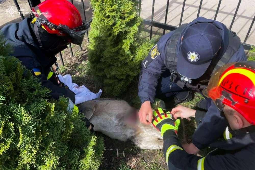 У Тернополі рятувальники з металевої пастки визволили косулю. Тварина застрягла в огорожі на прибудинковій території багатоквартирного будинку на вулиці Київській. Про це написали на сторінці обласного управління ДСНС в соцмережі .