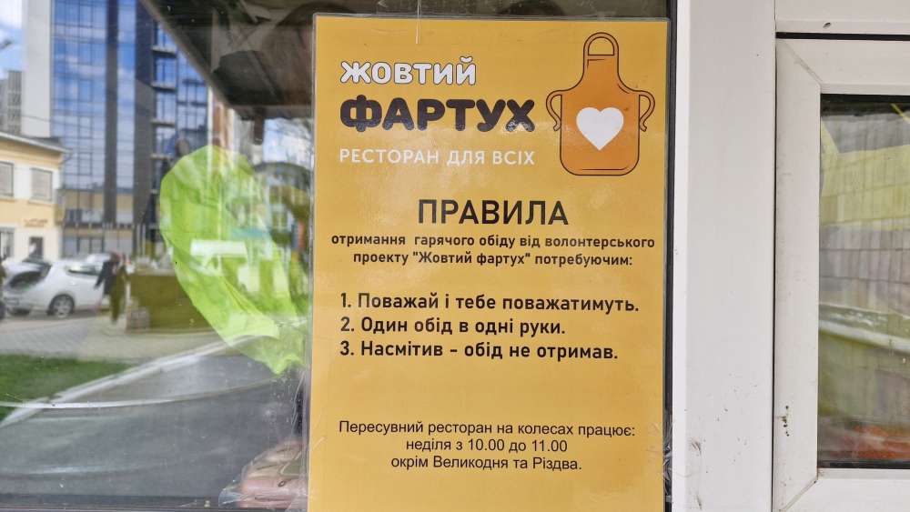 У Тернополі вже шостий рік поспіль волонтерський проєкт «Жовтий фартух» щонеділі забезпечує гарячими обідами людей, які цього потребують. Ініціатива працює без перерв — упродовж усього року.
