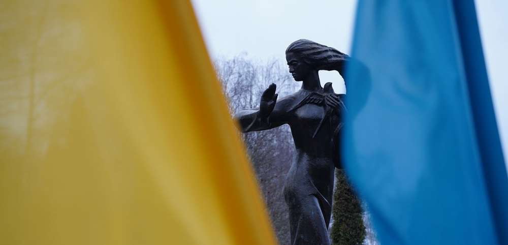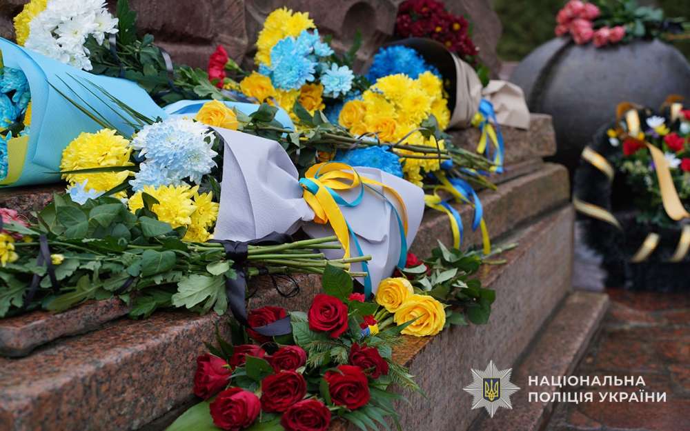 До підніжжя пам’ятника люди поклали гірлянду пам’яті, квіти і лампадки.