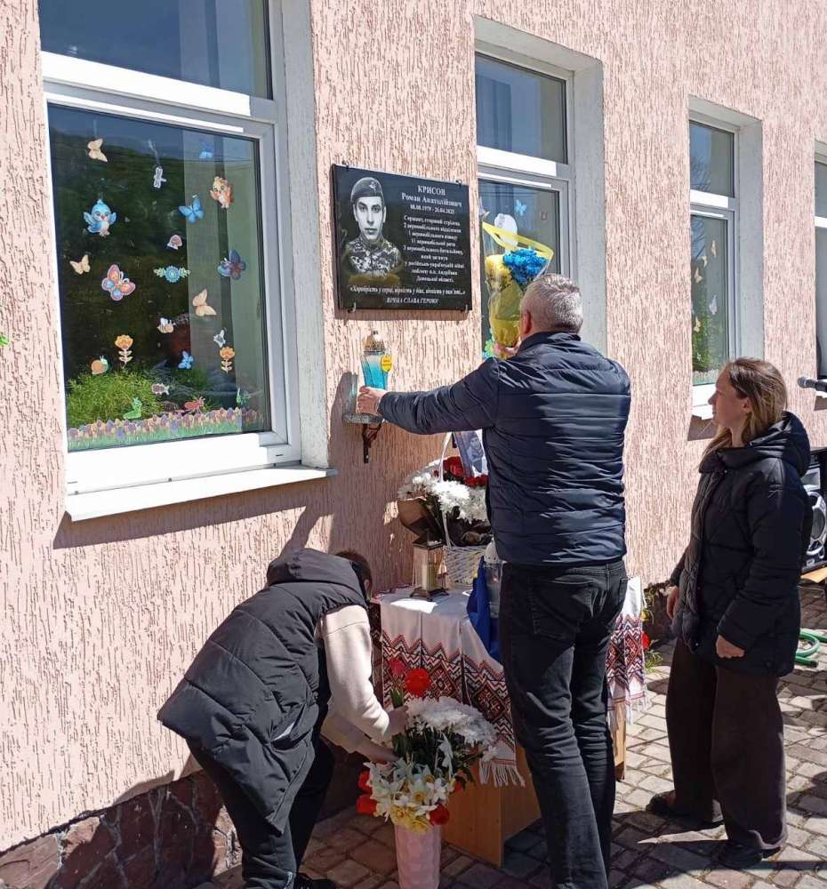 У Товстенській громаді відкрили меморіальну дошку Роману Крисову. Її встановили на фасаді Устечківської гімназії, де навчався захисник. Про це написали на сторінці громади в соцмережі Facebook.