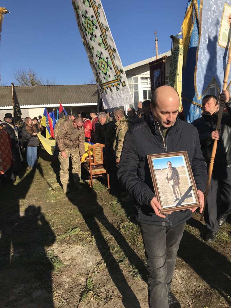Попрощатися з бійцем прийшли рідні, друзі, однокласники, близькі, військові, жителі громади, представники влади і духовенства. Під супровід оркестру жалобна процесія пройшла вздовж села до місцевої церкви, де священнослужителі відправили заупокійну панахиду, а опісля – до місцевого кладовища.