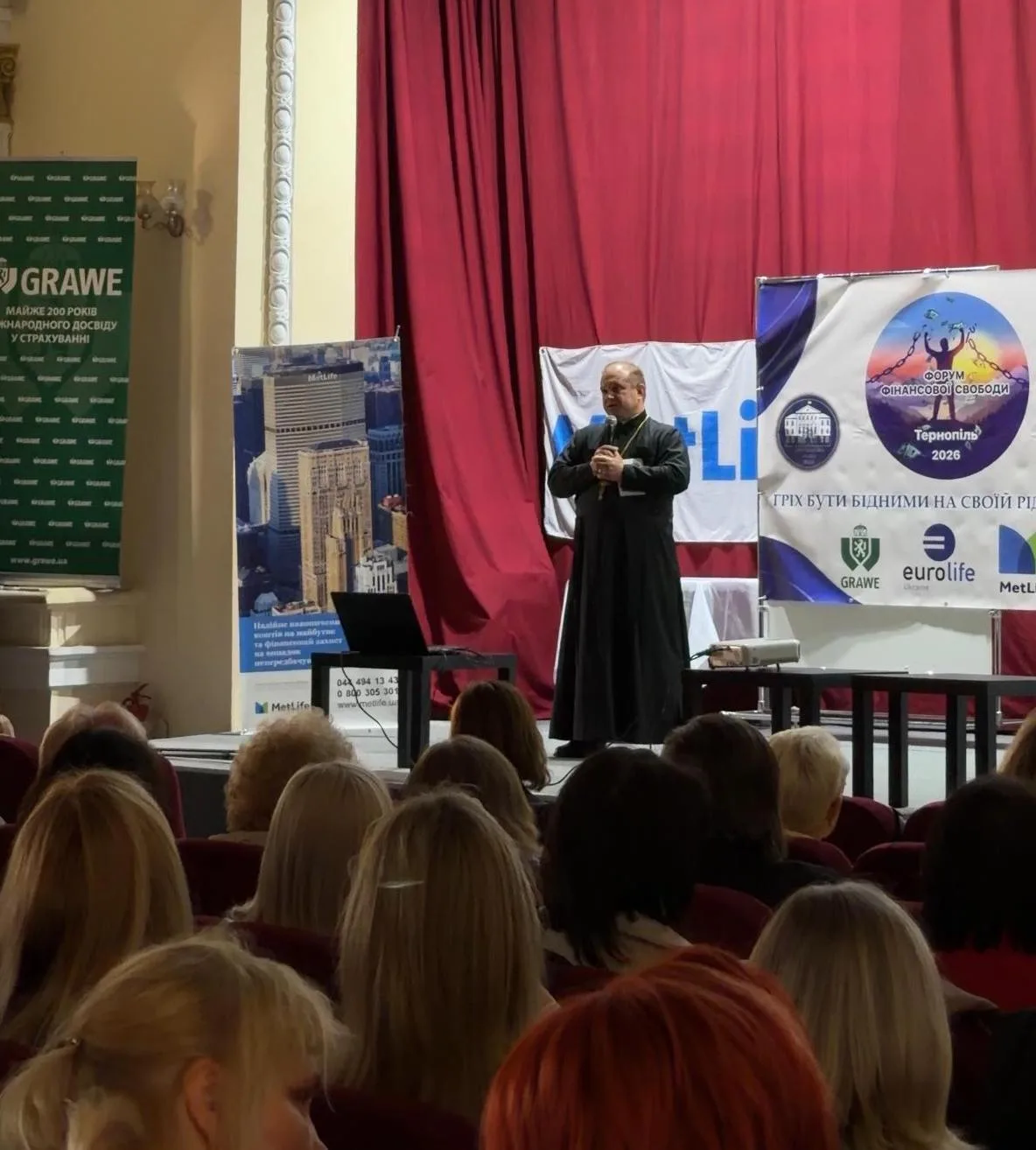 Завершив активну частину отець Олексій Філюк — священик Православної церкви України, член Національної спілки журналістів України, настоятель храмів у селах Білозірка та Шушківці. Його меседж був про головне: без людяності, взаємоповаги та любові всі фінансові стратегії — порожній звук.