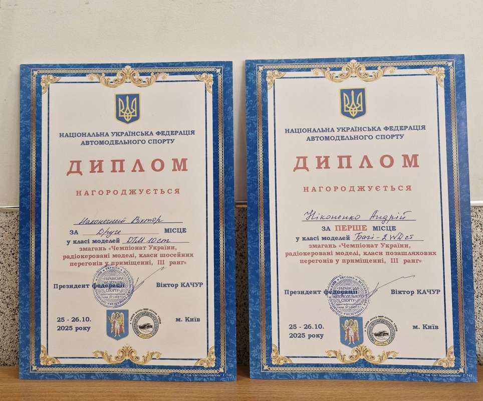 «Андрій Ніконенко здобув 1 місце у класах моделей «Багі 2WD ст» та «РЦЕ 12 ст». Віктор Наконечний виборов 3 місце у класі моделей «ДТМ 10 ст». За підсумками двох етапів Чемпіонату України Андрій Ніконенко став чемпіоном у двох класах – «Багі 2WD ст» і «РЦЕ 12 ст», а Віктор Наконечний посів 2 місце у класі «ДТМ 10 ст», – йдеться у повідомленні.