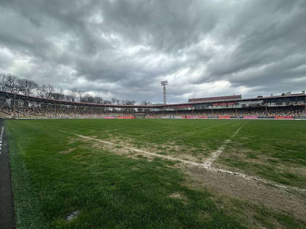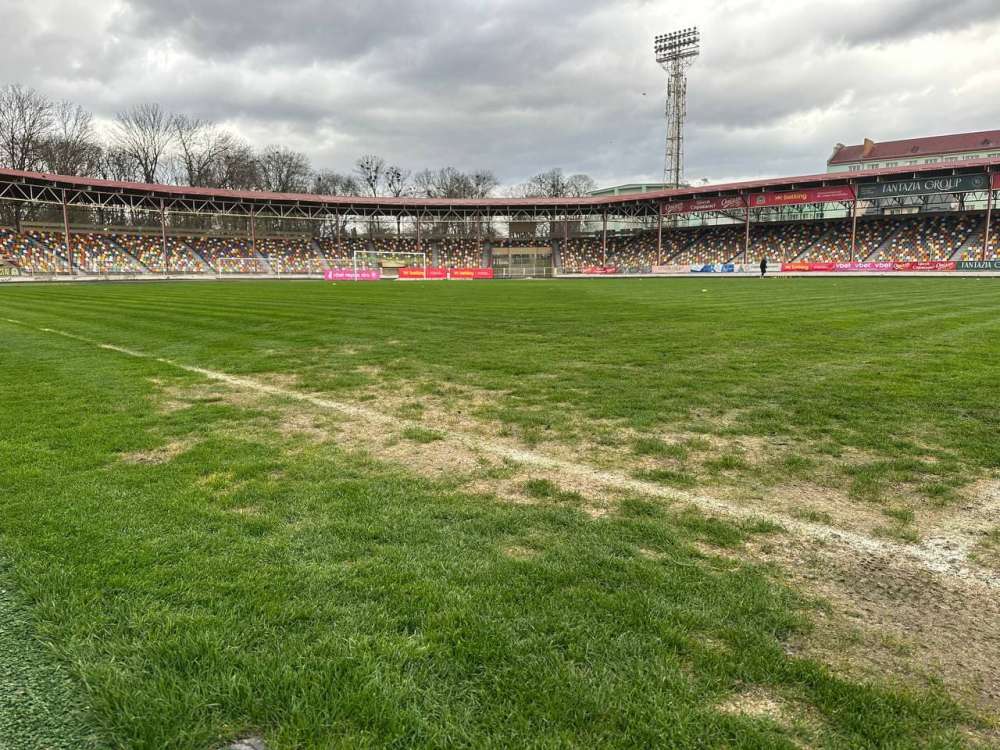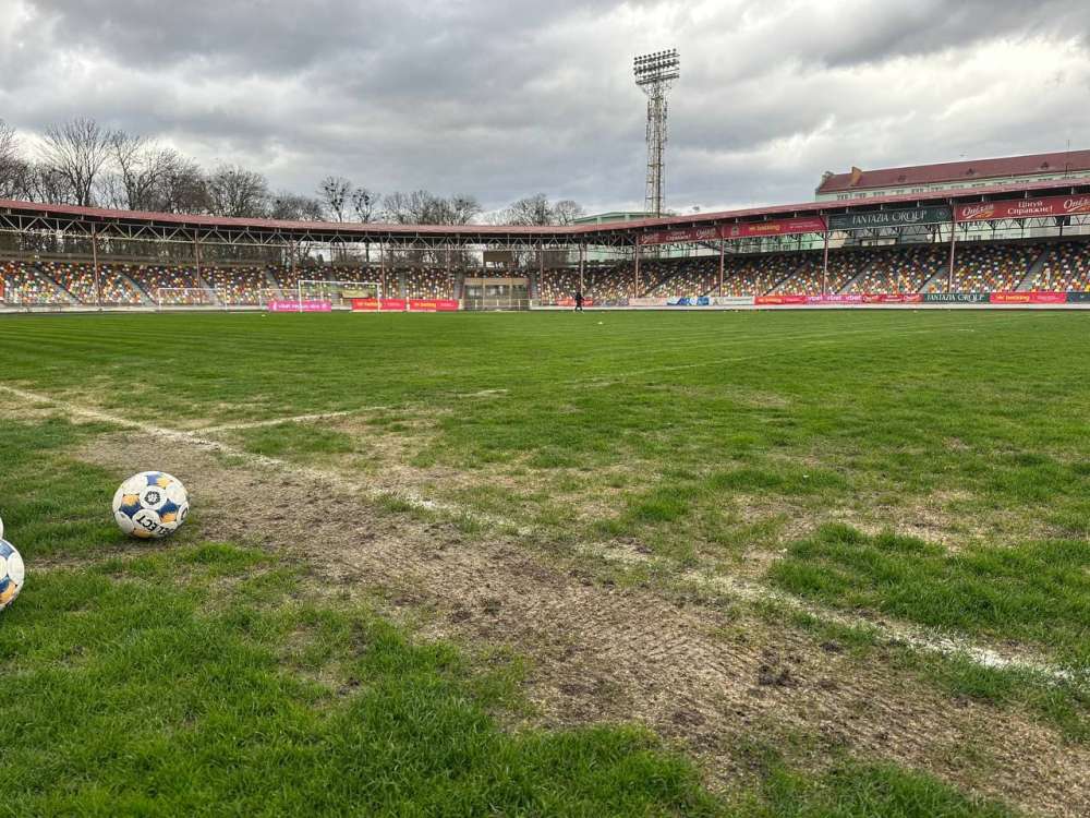 Комісія зафіксувала: газон стадіону у незадовільному стані. Витоптані та оголені ділянки, бур’яни, ущільнений ґрунт, відсутність будь-якого догляду. Біля воріт – болото. На момент передачі в оренду газон був у задовільному стані – це зафіксовано документально.