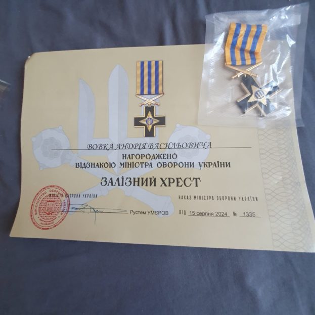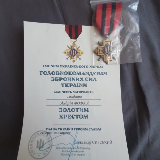 У День Незалежності України Андрій Вовк був відзначений грамотою міського голови Підгайців Ігоря Мерени – як подяка від усієї громади за його мужність і жертовність.