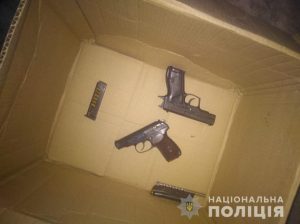 Під час обшуку у квартирі і салоні «Фольксвагена» правоохоронці виявили предмет, схожий на гранату Ф-1, із запалом, набої калібру 9 та 7,62 мм, пістолет «Форт-12» із набоями, номер якого знищено, пістолет Макарова із набоями, який викрадено в м. Одеса у 2017 році з авто місцевого мешканця, а також балаклави, в’язані рукавиці, документи, мобільні телефони, кілька комплектів державних номерів і пристрій для штучного створення радіо та GSM-перешкод.