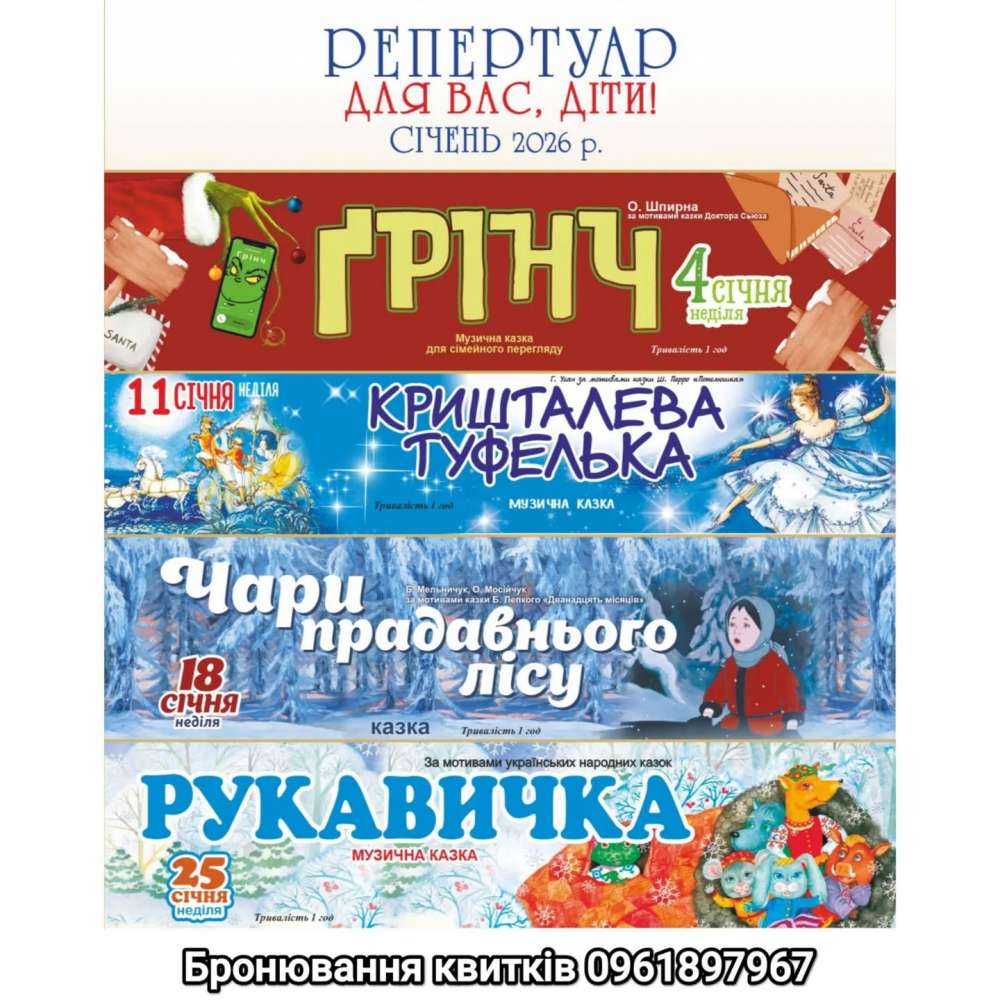 Дорогі поціновувачі мистецтва! Січень у Тернопільському академічному обласному українському драматичному театрі ім. Т. Г. Шевченка обіцяє бути насиченим емоціями, різдвяним дивом та незабутніми історіями!